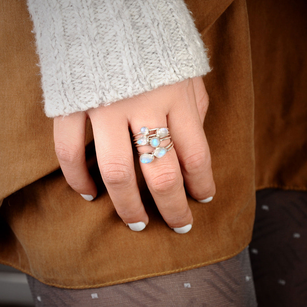 Boho crystal rings are made from 925 sterling silver. It's the ideal precious metal for our handpicked crystals. The silver creates an attractive setting but enhances the colors and subtle hues within each crystal. Gleaming sterling silver has a neutral quality that compliments every type of crystal and gemstone we use to create jewelry. When you wear a sterling silver ring, you can choose whether to give it a quick polish or allow it to tarnish naturally for a worn antique look.