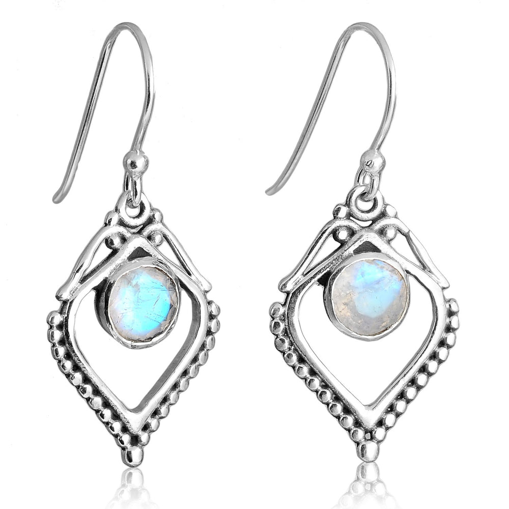 Unique boho chic drop earrings with Moonstone gemstone. Made of solid sterling silver.