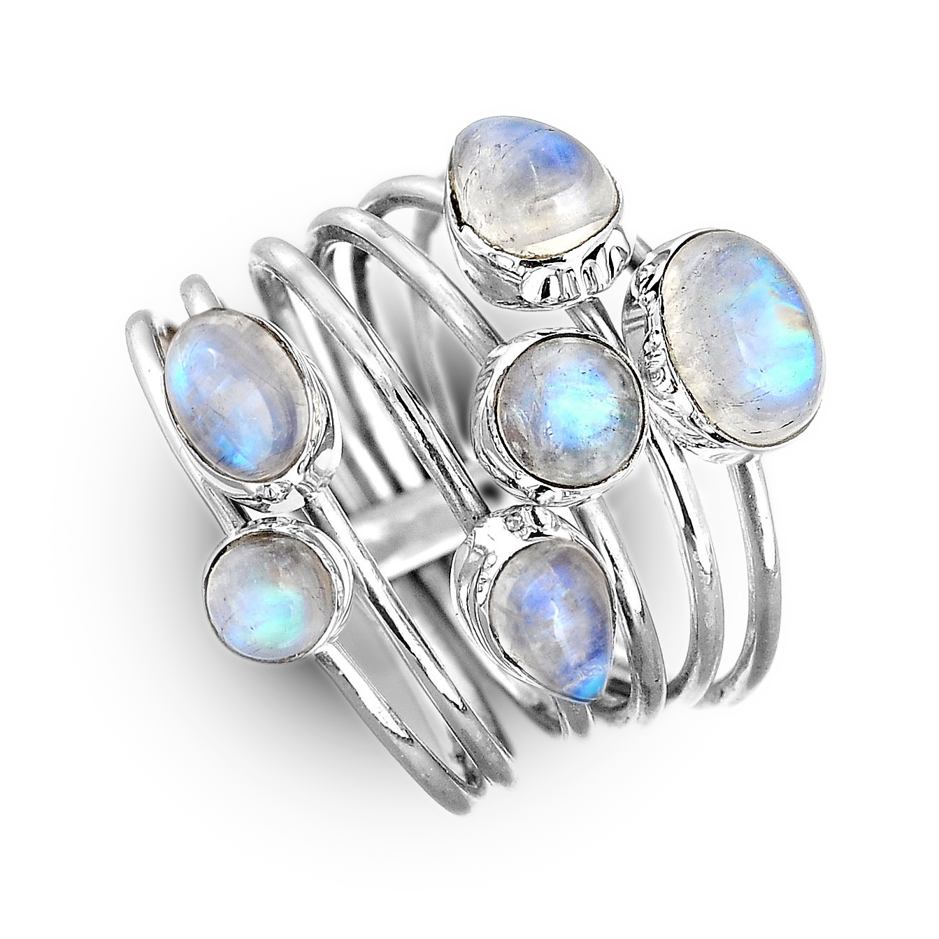 Beautiful Rainbow Moonstone Sterling Silver Ring
