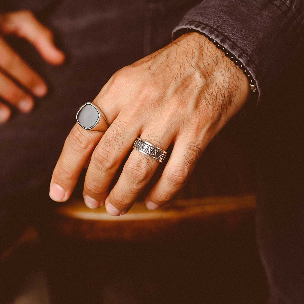 Roman numeral men's ring. Made of solid sterling silver. Spinner rings, also known as fidget rings, worry rings, or meditation rings, are the cool way to fidget anywhere.