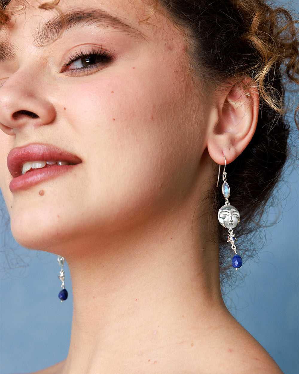 Mondgesicht-Ohrringe mit Lapislazuli und Mondstein