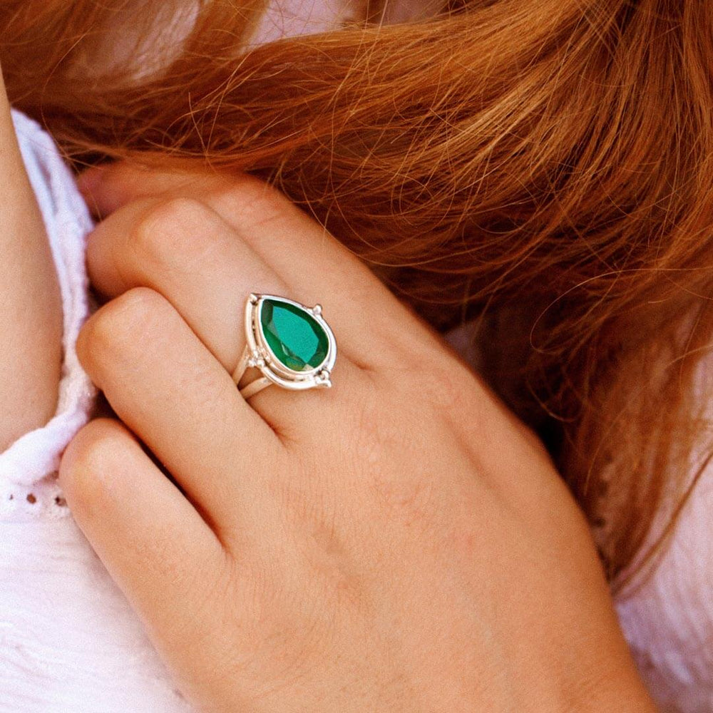Dieser wunderschöne grüne Onyx in Tropfenform ist ein atemberaubendes Statement! Dieser Ring aus Sterlingsilber und einem echten Onyx-Edelstein kann bei einem besonderen Abend oder zu Ihren Alltagsoutfits getragen werden, um einen zusätzlichen Boho-Touch zu verleihen. Onyx kann spirituellen Schutz, Glück und Erdung symbolisieren.