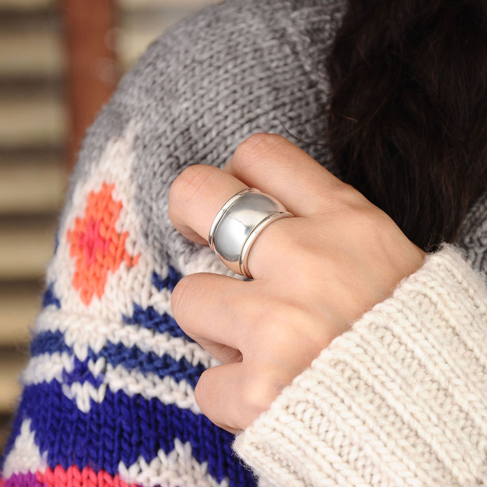 Klobiger, breiter Spinnerring. Aus massivem Sterlingsilber.