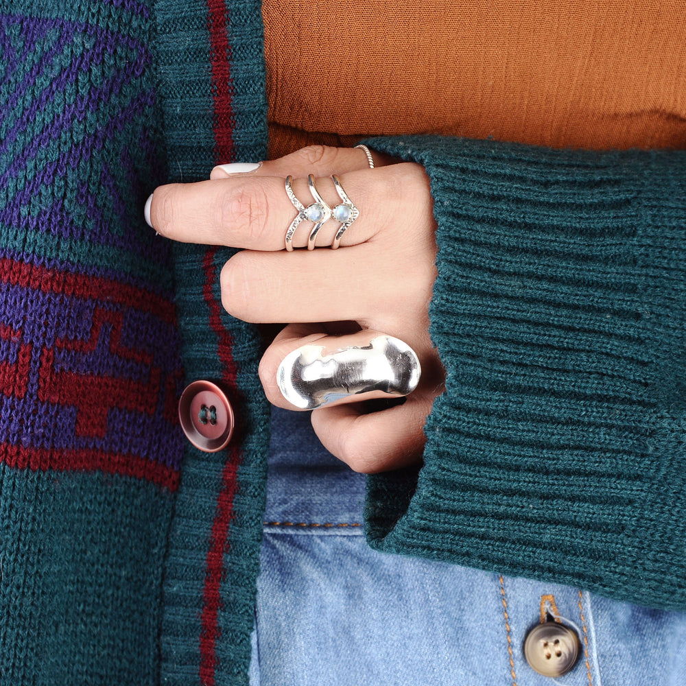 Triple Chevron Boho Ring with Moonstone Sterling Silver
