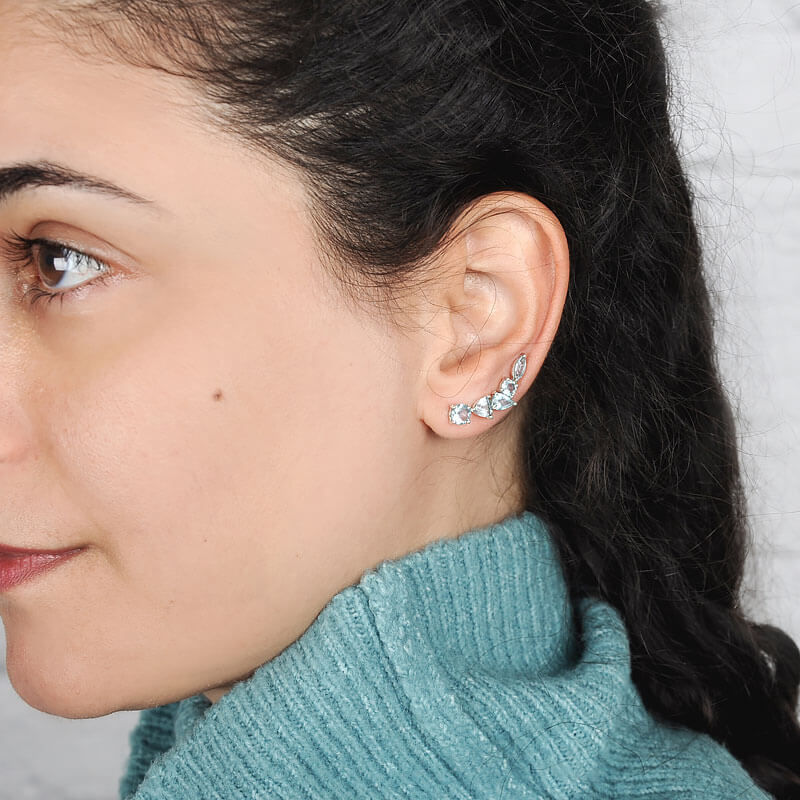 Natural Aquamarine gemstone earrings in unique ear climber design. Made of sterling silver