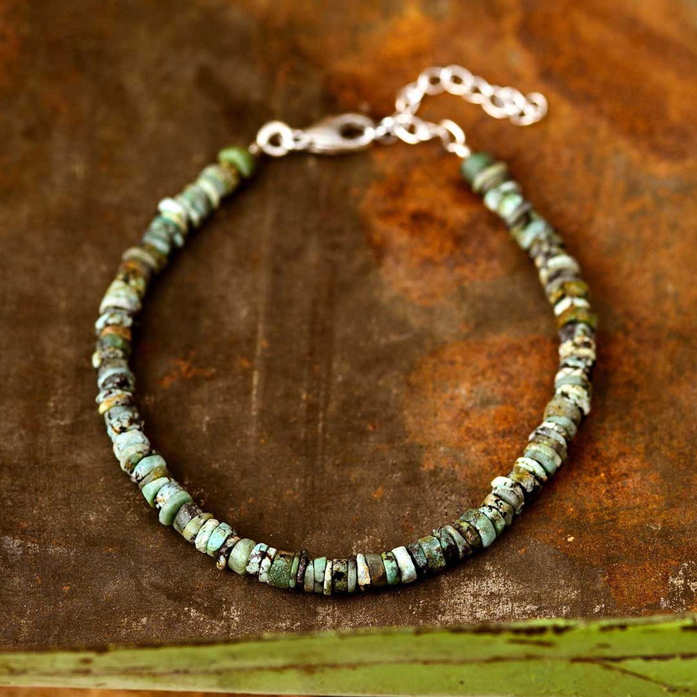 Natural Turquoise beaded bracelet. Fits for men and women. Made of solid sterling silver.