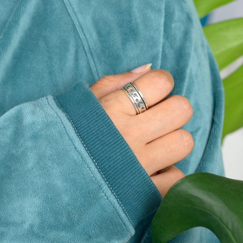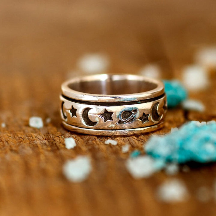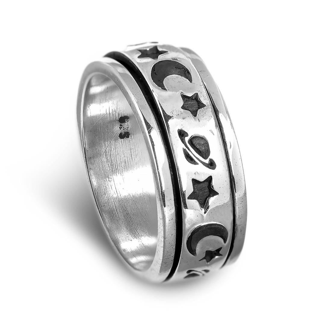 Saturn, Stars and Moon Fidget Ring Sterling Silver