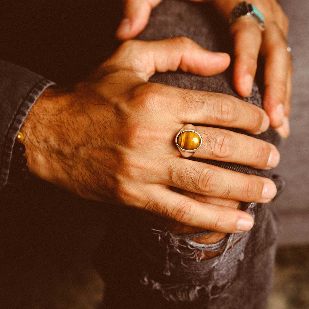 Tiger's Eye Signet Ring for Men Sterling Silver